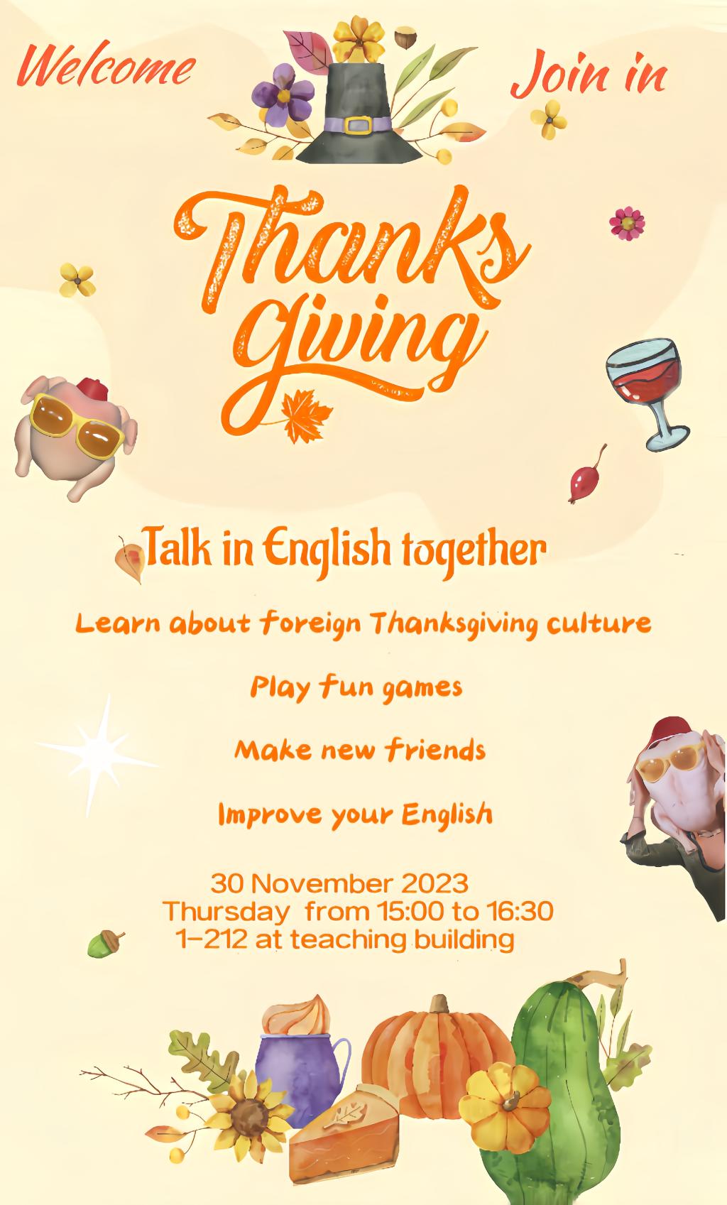 最后外教为大家分享了他们在感恩节中的一些经历和体验,让大家更直观地感受到了这个节日的魅力和意义。此次活动不仅让大家更深入地了解了感恩节的文化内涵,也为大家提供了一个用英语交流、学习的平台。许多同学表示,这次活动不仅让他们了解了西方的节日文化,还让他们在轻松愉快的氛围中提高了自己的英语水平。学生们期待有更多类似活动开展。让我们一起走进语言中心,用英语连接世界!