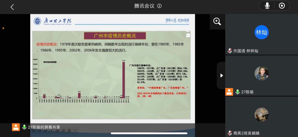 为普及登革热及艾滋病防治知识,加深同学们对登革热和艾滋病的认识,提高自我预防意识,外国语学院于12月3日晚19:00通过线上线下形式开展健康主题班会。外国语学院全体学生参会。