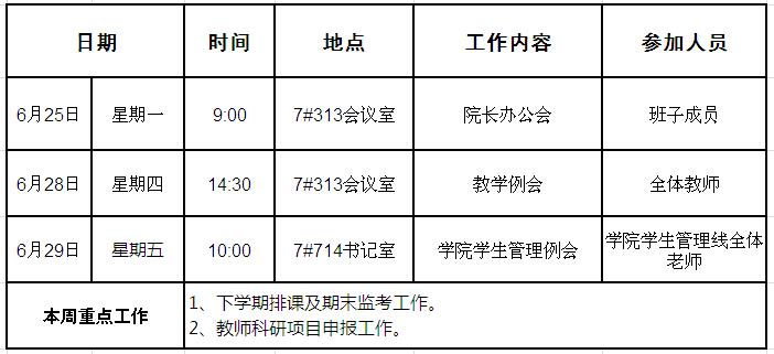 外国语学院第十七周周程安排表