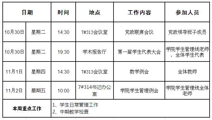 外国语学院第九周周程安排表
