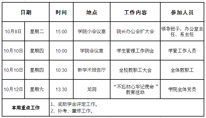 外国语学院第七周周程安排表
