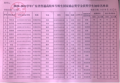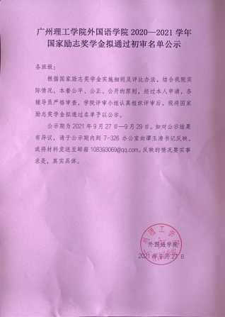 外国语学院2020-2021学年国家励志奖学金拟通过初审名单公示