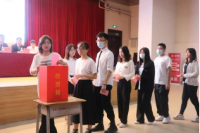 外国语学院团总支纪检委员兼学生会执行主席刘志恩宣布新一任学生会主席团候选人建议名单,经大会代表投票选举,总监票人报告计票结果。