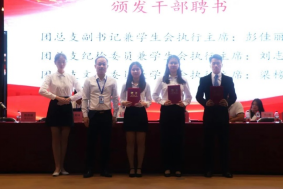 外国语学院团总支副书记兼学生会执行主席彭佳丽宣布当选新一任学生会主席团成员名单。新一任主席团成员:罗燕薇、黄思莹、黄泳康。