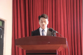 新一任学生会主席团成员黄泳康作就职演讲。他对成功当选学生会主席团成员深表荣幸,并表示在继承和发扬学生会优良传统的同时,将在原本的基础上搭建新的舞台、开创新的局面。