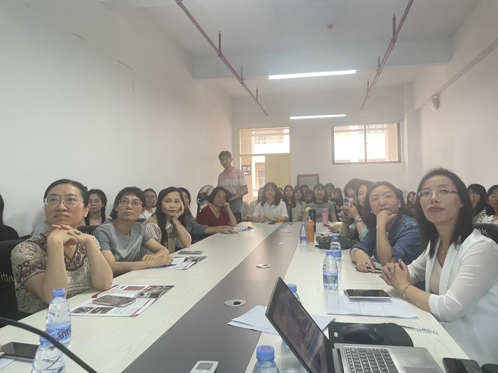 冉海涛书记表示,揭阳职业技术学院三二分段协同班的同学们自信大方,勤奋好学,给人留下深刻印象。同时他也希望在座同学们能提早准备,打好基础,重视实践,全面提升综合素质,为升本做准备。随后,冉海涛书记介绍了广州理工学院的办学优势,近几年高质量发展成果,外国语学院的学科专业建设情况,人才培养特色和实习就业等情况,并表示要加强与揭阳职业技术学院外语系在学科竞赛和专四报名备考等方面的协同,为同学们提供更多更好的学习锻炼平台。申丹主任围绕为什么要报考广州理工学院,全面介绍了外国语学院相关专业的人才培养目标,课程设置及证书考取等不同方面的情况。沈悦英老师则给在座老师及学生介绍了其学科竞赛的指导经验,并希望两校能加强在这方面的交流,共同探索开展校际学生活动新模式。
