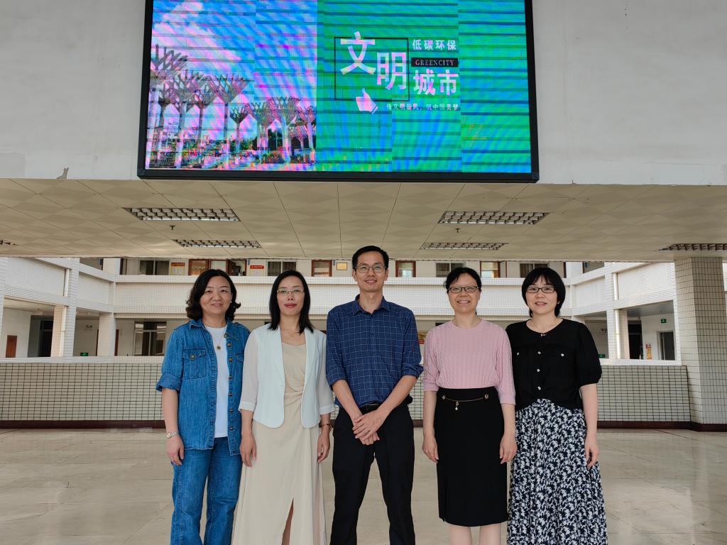 外国语学院党总支书记、副院长冉海涛、英语系主任申丹,沈悦英老师与揭阳职业技术学院教师合影