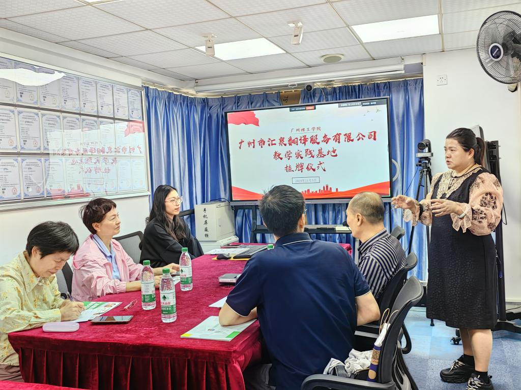 为配合学校开展合格评估实践教学基地遴选工作,扎实推进各专业实践教学基地建设,2024年11月5日上午,广州理工学院张世梅副校长、黄亚兰主任、魏东婷副处长、库夭梅副处长等一行人前往广州汇泉翻译服务公司实践教学基地进行实地考察调研。外国语学院冉海涛书记和申丹主任陪同。此次活动旨在全面了解基地运行情况,加强校企合作,提升实践教学水平。
