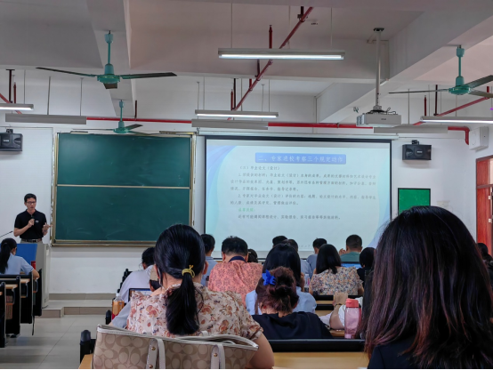7月19日上午,张世梅副校长和教学管理部陈英征部长在13栋401为外国语学院全体教师做题为《坚持以学生为本,强化教学中心地位》的本科教学工作合格评估宣讲会。