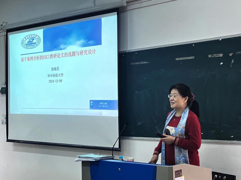 为提高科研能力和教学水平,进一步拓展科研视野并优化科研规划,12月6日上午,外国语学院邀请华中科技大学徐锦芬教授在7栋508教室开展主题为“基于案例分析的SSCI教研论文的选题与研究设计”学术讲座。此次讲座由外国语学院韩院长和副院长冯军霞共同主持。外国语学院部分教师参会。
