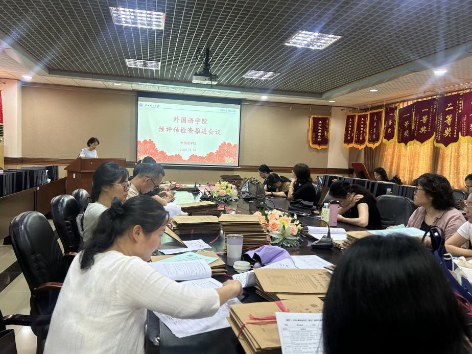 为进一步夯实本科教学基础,以最优状态迎接即将到来的本科教学工作预评估,外国语学院于2025年10月10日专门组织召开预评估检查推进会议,并集结院内资深专家与骨干教师力量,对2024-2025学年第二学期的课程考试试卷与2025届毕业论文进行了全面、细致的集中复查审核。