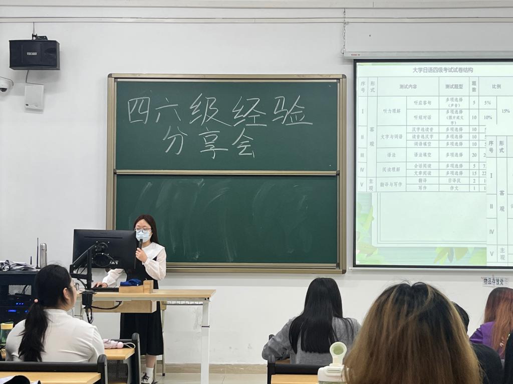 为加强学风建设,帮助我院学子明确大学英语四、六级及大学日语四、六级备考方向,更好地备战冲刺考试。4月22日上午,外国语学院在6栋教学楼101教室开展大学英语四、六级及大学日语四、六级备考经验分享会。本次分享者为多位在大学英语四、六级及大学日语四、六级考试中取得佳绩的志愿者同学。外国语学院21和22级学生参与。