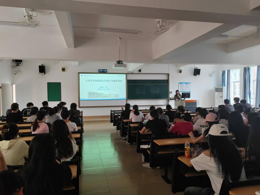为进一步营造优良育人环境,提升人才培养质量,引导学生树立正确学习观念与行为准则,9月10日14:30,外国语学院在7-518教室召开“学风及日常行为规范教育”会议。本次会议由学工组长卫一主持,23级新生参与。