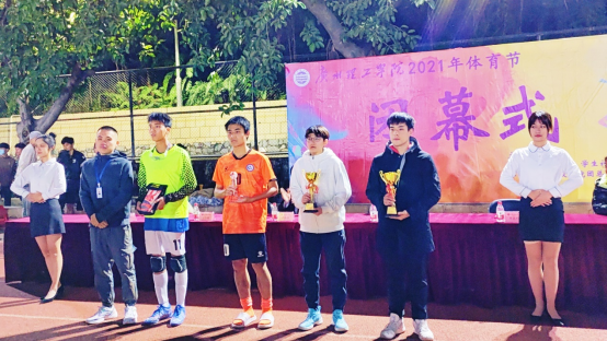随后进行颁奖仪式,首先由工商管理学院团总支书记王宇瀚为优秀个人颁奖,我院詹璐璐获得了女篮最具有价值球员;其次是由智能制造与电气工程学院团总支书记谢燕惠为亚军颁奖,我院获得了女子团体篮球比赛和排球比赛亚军,最后团委老师李惠玲给冠军颁奖,我院取得了女子篮球团体比赛和羽毛球女子单打冠军的出色成绩。